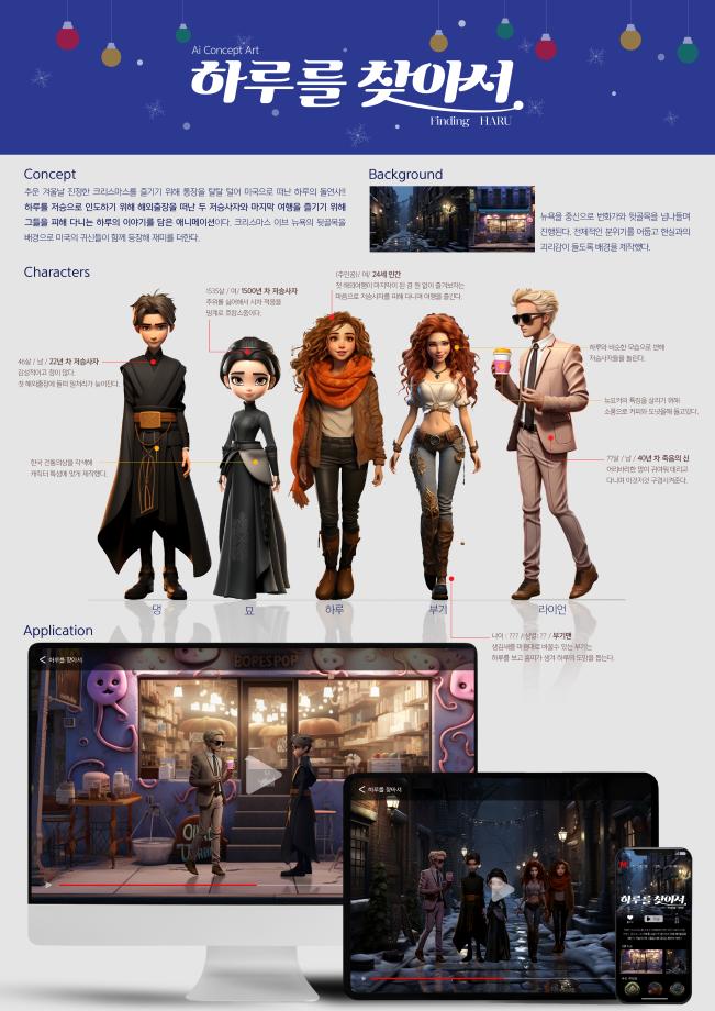 본문 시작 홈으로 AI 학과소개 학과과정 시영소식 입학/취업 AI 학과자랑 SNS소통 홈페이지가이드 AI 콘텐츠 연구소(AI 디자인) 디자인 정보 AI 콘텐츠 연구소(AI 디자인) AI 콘텐츠 연구소(AI 디자인) 페이스북 트위터 프린트 2023년도 AI 수업 우수 결과물 시각영상디자인학과 1900 2024-09-08 #aizen #Aivideo #aidesign ign #세명AI콘텐츠연구소 #제천 #세명대학교 #시각영상디자인 #AI모듈교과 #AI디지털일러스트레이션 #신희경수업 #AI홍보영상제작 2학년 2학기 학생이 한, 컨셉 아트, 에디토리얼 일러스트레이션입니다. 첫학기임에도 우수하게 잘하였습니다. 컨셉 아트 : 전찬형, 서연우, 문수미 에디토리얼 일러스트레이션 : 지원희 문수미 목록 이전2024년 1학기 모듈 생성 AI 일러스트레이션 - 패턴, 굿즈 다음 AI 콘텐츠 연구소 / AI 스튜디오 유투브 개설하였습니다. 만족도조사 만족도 조사 이 페이지에서 제공하는 정보에 대하여 만족하시나요? 매우만족 만족 보통 불만족 매우불만족