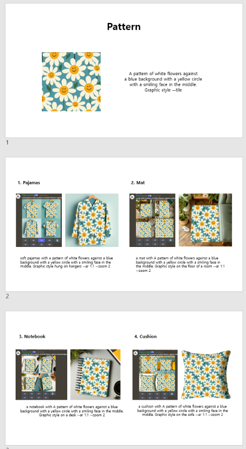 본문 시작 홈으로 AI 학과소개 학과과정 시영소식 입학/취업 AI 학과자랑 SNS소통 홈페이지가이드 AI 콘텐츠 연구소(AI 디자인) 디자인 정보 AI 콘텐츠 연구소(AI 디자인) AI 콘텐츠 연구소(AI 디자인) 페이스북 트위터 프린트 2024년 1학기 모듈 생성 AI 일러스트레이션 - 패턴, 굿즈 시각영상디자인학과 1340 2024-09-08 타일 기능을 활용하여 사방연속 패턴 제작 후, 이를 Zoom 기능/ Remix 기능을 활용하여 굿즈 제작 평소의 1/10 속도로 제작가능하였습니다. 허유빈, 이정동 신유빈 홍주영 목록 이전2024년 1학기 모듈 생성AI일러스트레이션 수업 - 포스터 다음 2023년도 AI 수업 우수 결과물 만족도조사 만족도 조사 이 페이지에서 제공하는 정보에 대하여 만족하시나요? 매우만족 만족 보통 불만족 매우불만족