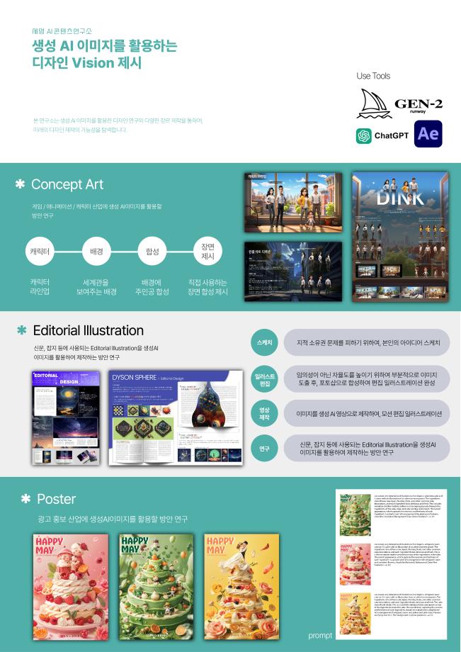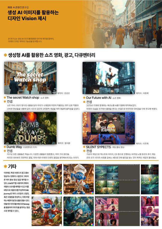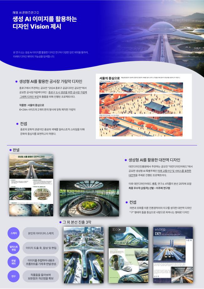 본문 시작 홈으로 AI 학과소개 학과과정 시영소식 입학/취업 AI 학과자랑 SNS소통 홈페이지가이드 AI 콘텐츠 연구소(AI 디자인) 디자인 정보 AI 콘텐츠 연구소(AI 디자인) AI 콘텐츠 연구소(AI 디자인) 페이스북 트위터 프린트 세명 AI 콘텐츠 연구소 - AI art & Design 시각영상디자인학과 830 2025-03-17 세명 AI 콘텐츠 연구소 소속 연구원들이 AI art & Design 전시회를 위해 만든 작업물입니다. 목록 이전세명 AI 콘텐츠 연구소 - 세명 콘텐츠스쿨(SMCS) 가을 정기 전시회 다음 세명 AI 콘텐츠 연구소 - AI art & Design 전시회 만족도조사 만족도 조사 이 페이지에서 제공하는 정보에 대하여 만족하시나요? 매우만족 만족 보통 불만족 매우불만족