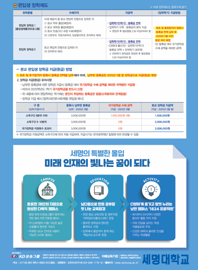 ★ 2025학년도 편입생 전원 : 입학학기(1학기) 등록금 전액 지원(한의학과 제외) ★