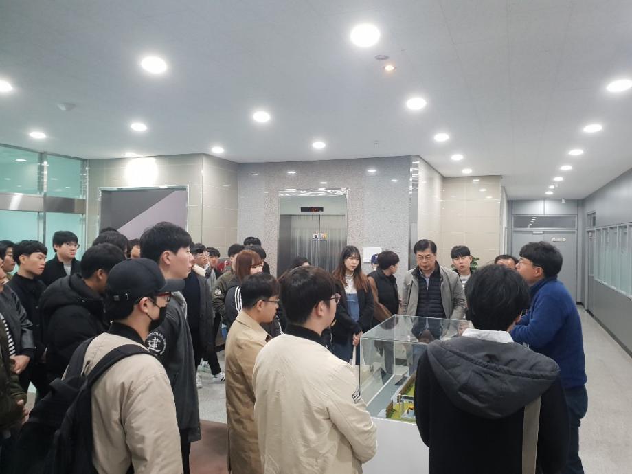 10월 26일(금요일) 건축공학과에서는 본교의 현장중심 교육방침에 입각하여 2학년 학생들의 현장견학을 실시하였다. 총 43명(학생 41, 교수 2)이 참가한 이번 견학은 전공과목인 ‘도시환경디자인(담당 권태호 교수)’과 ‘건축환경계획응용 (담당 이응직 교수)’의 융합적 차원에서 이루어졌고, 충북혁신도시의 도시계획 환경디자인 견학 및 체험 그리고 한국건 축생활환경 시험연구원(KCL)에서 건축과 생활 속에서의 친환경 자재부분에 대한 견학으로 새로운 경험과 안목을 높이 는 계기가 되었다. 또한 강의실에서 습득한 이론적인 지식을 현장견학과 체험을 통해 극대화시키고 전공분야의 다양한 영역 탐색으로 전공에 대한 기대감과 자신감을 높이는 효과를 얻었다.