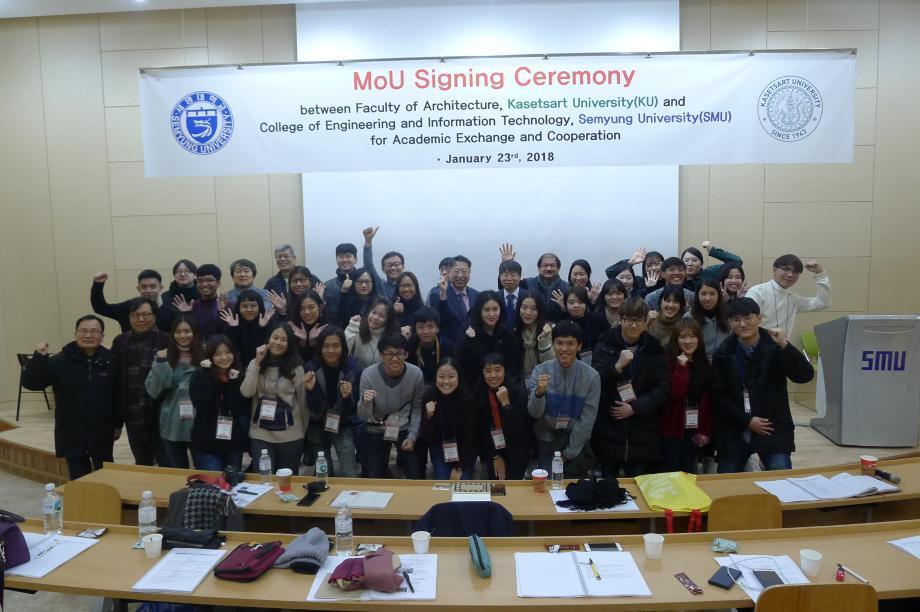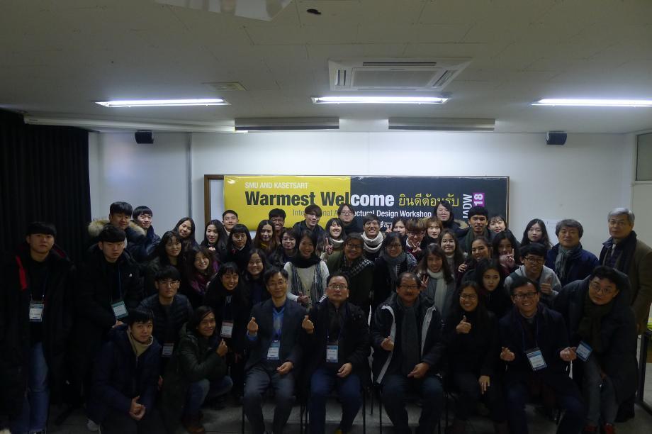 2018.01.22 (월) ~ 2018.01.26 (금) 까지 태국 방콕 카세삿대학교(Kasetsart University) 건축학과 교수님들과 학생 25 명을 초청해 '도시재생 국제건축디자인 워크숍(IADW) 2018'을 성공적으로 마무리 하였습니다. 세명대 학생들과 카세삿 학생들은 세명대 기숙사에서 함께 생활하며 "쇠락하는 도시환경과 제천시를 위한 건축해법" 이 라는 주제로 대학과 도시재생현장 지원센터가 진행하는 특강과 세미나에 참여하였고, 지도교수님들과 팀별작업을 하면 서 다양하고 창의적인 아이디어 디자인을 선보였습니다.
