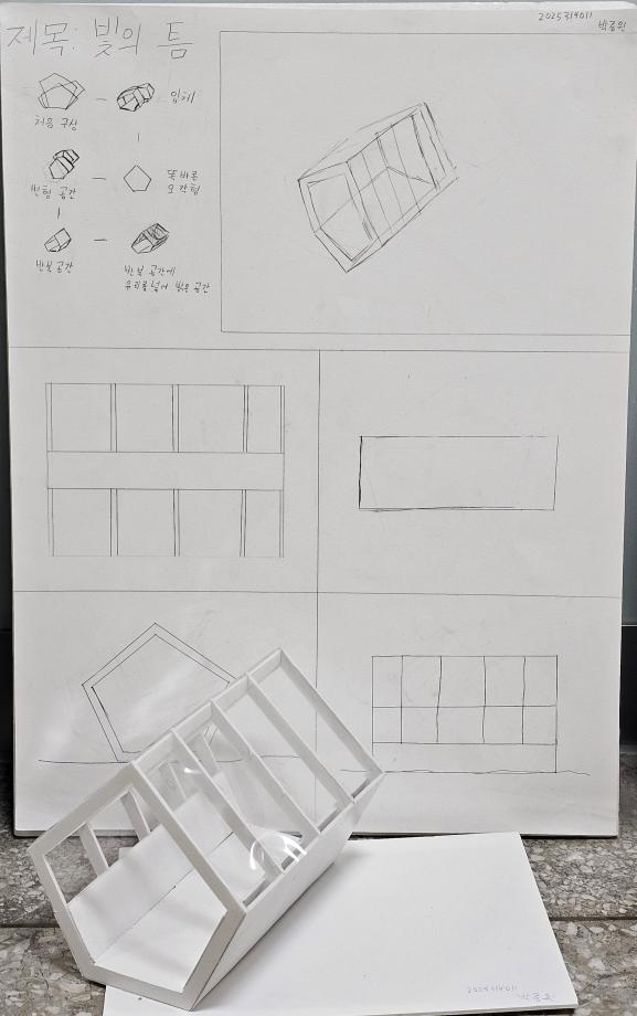 본문 시작 홈으로 커뮤니티 학과소개 교수소개 교육과정 학과 행사 및 활동 커뮤니티 홈페이지가이드 열린정보 학과일정 학과공지 채용정보 및 자료 열린정보 포토갤러리 먹거리, 즐길거리 포토갤러리 사진 사진 영상 사진 페이스북 트위터 프린트 사진 영상 1학년 중간 설계과제 건축학과 660 2025-10-30 1학년은 ‘건축공간구성’에서 스케치와 모형을 통해 공간을 탐구했습니다. 처음 도전한 판넬과 모델링이었지만, 각자의 아이디어와 독창성이 빛나는 작품들이 완성되었습니다 ✨ 건축가로 성장해갈 이들의 다음 걸음이 더욱 기대됩니다! 👣😊 목록 이전2학년 중간 설계과제 다음 세명대학교 홍보 포스터 만족도조사 만족도 조사 이 페이지에서 제공하는 정보에 대하여 만족하시나요? 매우만족 만족 보통 불만족 매우불만족