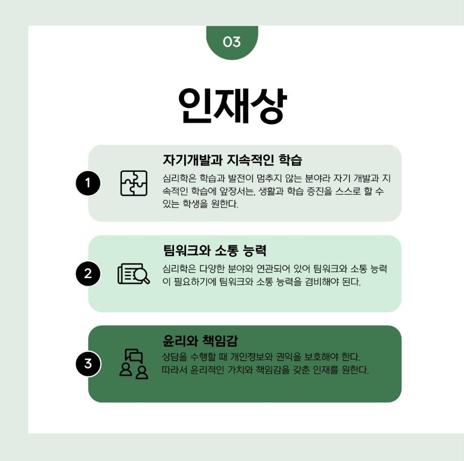 본문 시작 홈으로 학과 커뮤니티 학부소개 교수소개 교육목표 입학안내 학과 커뮤니티 대학원 커뮤니티 홈페이지가이드 학과 갤러리 학과소식 학사일정 학과 갤러리 학과 갤러리 페이스북 트위터 프린트 상담심리학과 입시모집요강 및 인재상 상담심리학과 1666 2024-08-29 목록 이전상담심리학과 교과과정 & 전공 정보 다음 [비교과 프로그램] 상담심리학과 산학협력 사제동행 프로그램 만족도조사 만족도 조사 이 페이지에서 제공하는 정보에 대하여 만족하시나요? 매우만족 만족 보통 불만족 매우불만족