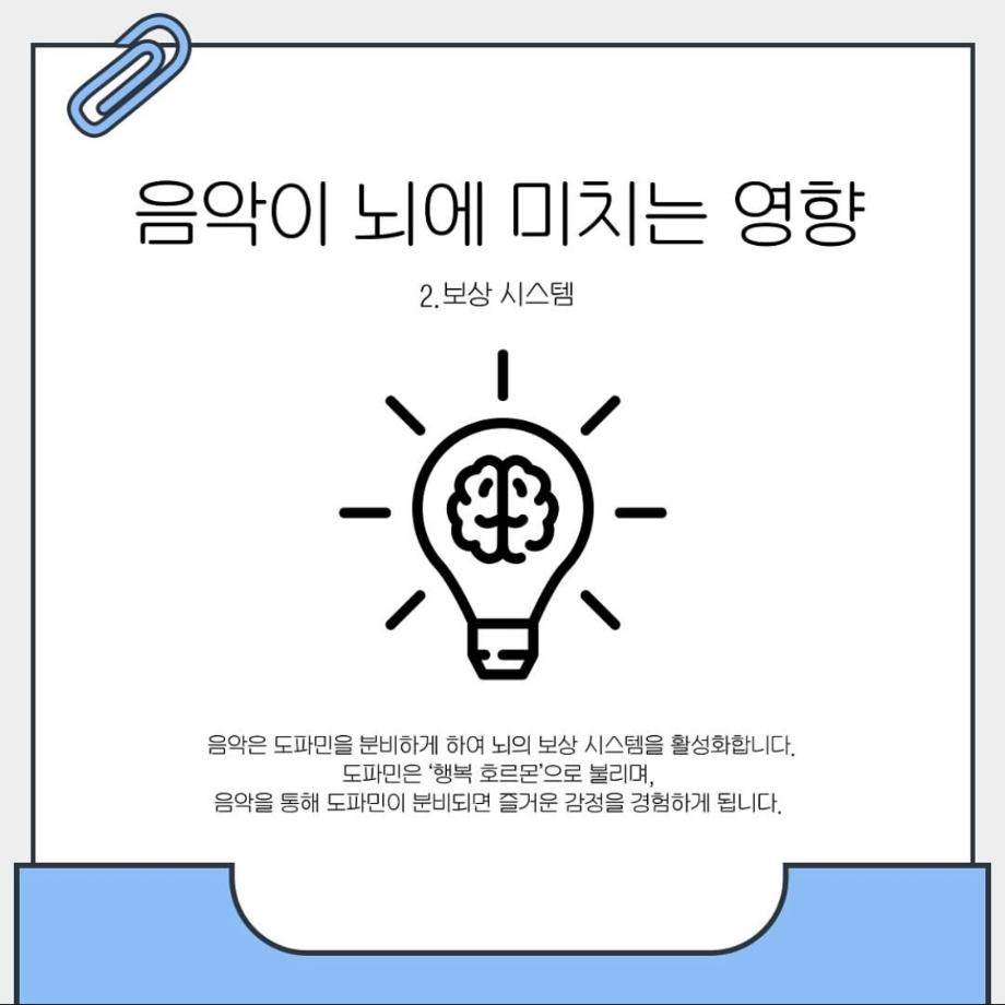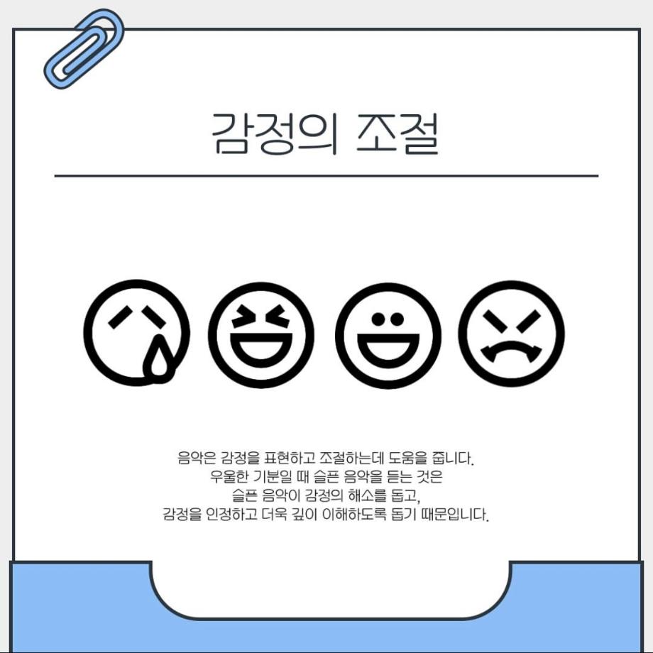본문 시작 홈으로 학과 커뮤니티 학부소개 교수소개 교육목표 입학안내 학과 커뮤니티 대학원 커뮤니티 홈페이지가이드 학과 갤러리 학과소식 학사일정 학과 갤러리 학과 갤러리 페이스북 트위터 프린트 음악이 심리에 미치는 영향 상담심리학과 1389 2025-05-17 안녕하세요 세명대학교 상담심리학과 학생회 오비르입니다 ! 우리가 매일 듣는 음악이 심리에 미치는 영향이 있다는 사실을 알고 계신가요? 음악은 뇌의 편도체, 보상 시스템을 자극해 감정을 조절하는 역할을 합니다. 마음이 복잡할 때 음악을 통해서 자신의 감정을 인정하고 이해해보는 것은 어떨까요? (~˘▾˘)~♫•*¨*•.¸¸♪ 목록 이전운동과 상담심리 다음 상담심리학과 MT 일정 안내 만족도조사 만족도 조사 이 페이지에서 제공하는 정보에 대하여 만족하시나요? 매우만족 만족 보통 불만족 매우불만족