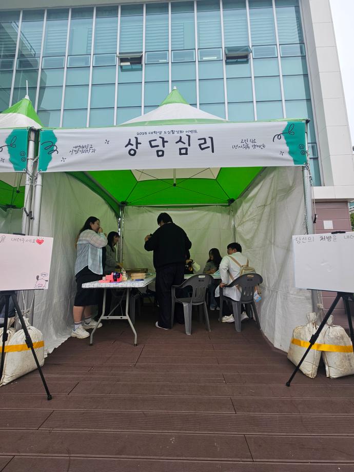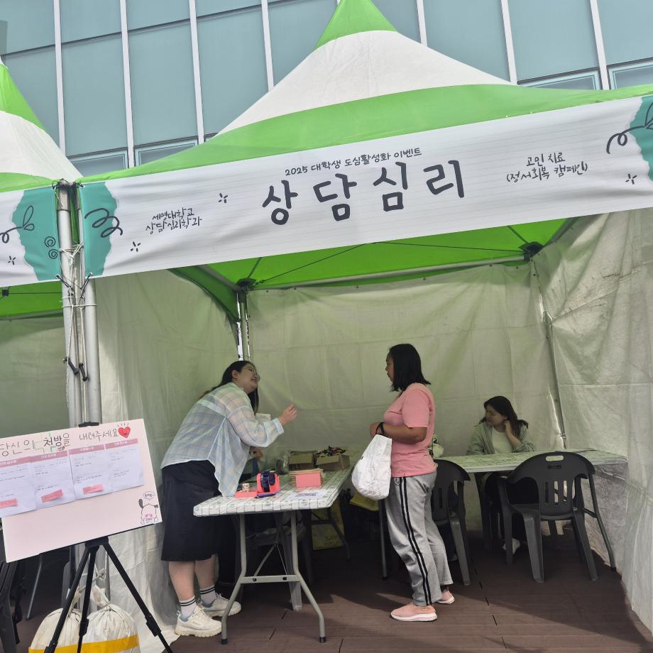 본문 시작 홈으로 학과 커뮤니티 학부소개 교수소개 교육목표 입학안내 학과 커뮤니티 대학원 커뮤니티 홈페이지가이드 학과 갤러리 학과소식 학사일정 학과 갤러리 학과 갤러리 페이스북 트위터 프린트 2025 대학생 도심활성화 이벤트 상담심리학과 530 2025-10-14 안녕하세요 세명대학교 상담심리학과입니다! 9월 30일에 진행된 2025 대학생 도심활성화 행사에서 상담심리학과 학생들이 '마음약국'이라는 부스로 정서회복 캠페인을 진행했습니다. ( ·•︡_•︠)ʕ𐭩 다양한 사람들의 고민을 듣고 공감과 위로를 전하는 의미 있는 시간이었습니다. 앞으로 이런 기회가 더 많아지길 바라며, 큰 고민 없이 행복한 날들이 이어지길 바랍니다 :) 목록 이전GRIT 동아리 봉사활동 다음 2025학년도 Step Up! SMU창업캠프 및 경진대회 만족도조사 만족도 조사 이 페이지에서 제공하는 정보에 대하여 만족하시나요? 매우만족 만족 보통 불만족 매우불만족