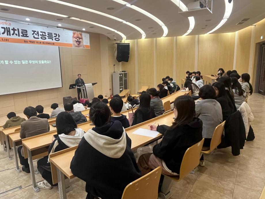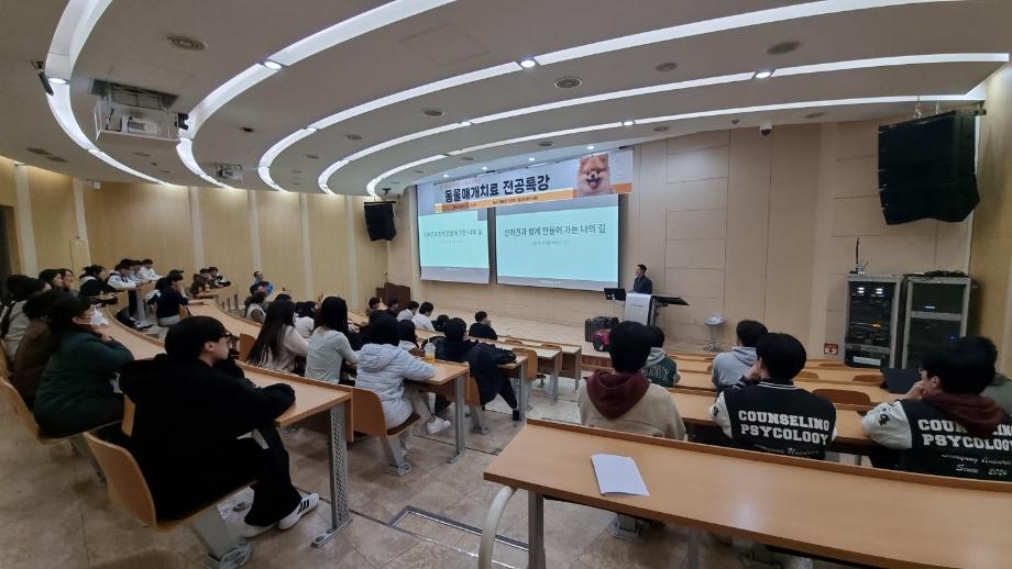 본문 시작 홈으로 학과 커뮤니티 학부소개 교수소개 교육목표 입학안내 학과 커뮤니티 대학원 커뮤니티 홈페이지가이드 학과 갤러리 학과소식 학사일정 학과 갤러리 학과 갤러리 페이스북 트위터 프린트 동물매개치료 전공특강 상담심리학과 419 2025-11-10 안녕하세요 세명대학교 상담심리학과입니다! 지난 5일 학술관 컨퍼런스홀에서 동물매개치료 전공특강이 진행되었습니다! 동물매개치료 관련 이론을 배우며 전공 능력을 함양할 수 있는 뜻깊은 시간이었습니다 :) 목록 다음 2025학년도 Step Up! SMU창업캠프 및 경진대회 다음 나와 어울리는 심리이론은? 만족도조사 만족도 조사 이 페이지에서 제공하는 정보에 대하여 만족하시나요? 매우만족 만족 보통 불만족 매우불만족