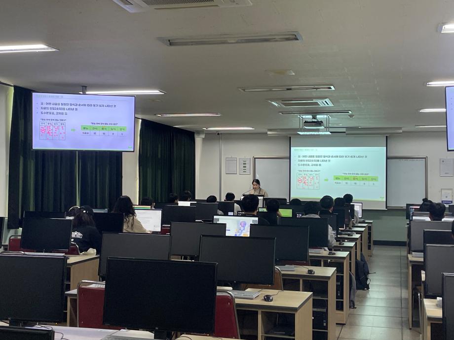 본문 시작 홈으로 커뮤니티 학과소개 교수소개 교육과정 현장실습 및 취업정보 커뮤니티 홈페이지가이드 포토갤러리 학과공지 학사일정 학생회 동아리 학생 소통 광장 포토갤러리 전공자료실 서식자료실 포토갤러리 페이스북 트위터 프린트 [사회복지학과] 찾아가는 통계 특강 진행 사회복지학과 1168 2025-11-05 지난 10/29(수)에 충청지방통계청에서 진행하는 '찾아가는 통계 특강'을 진행하였습니다. 목록 이전[사회복지학과] 중간고사 응원 간식 나눔 이벤트 진행 다음 [사회복지학과] 2025학년도 2학기 1차 교외견학 진행 만족도조사 만족도 조사 이 페이지에서 제공하는 정보에 대하여 만족하시나요? 매우만족 만족 보통 불만족 매우불만족