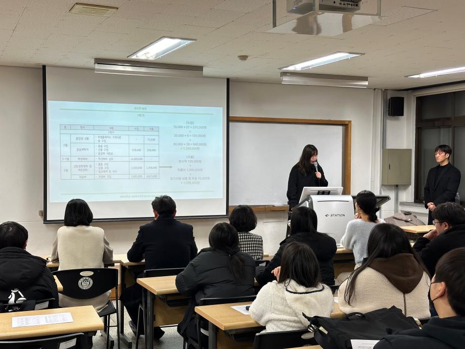 이번 종강 총회에서는 늘품 학생회의 연간 행사 보고 및 공약 이행 보고, 결산안 발표를 진행하였으며, 차기 학생회인 한결 학생회의 회장단 인사와 예산안 발표를 진행했습니다✨