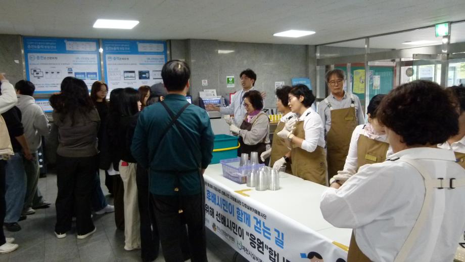 본문 시작 홈으로 커뮤니티 학과소개 교수소개 교육과정 현장실습 및 취업정보 커뮤니티 홈페이지가이드 포토갤러리 학과공지 학사일정 학생회 동아리 학생 소통 광장 포토갤러리 전공자료실 서식자료실 포토갤러리 페이스북 트위터 프린트 [사회복지학과] 중간고사 응원 간식 나눔 이벤트 진행 사회복지학과 932 2025-11-05 제천시실버복지관에서 학생들의 중간고사를 응원하기 위해 간식 나눔 이벤트를 진행해주셨습니다. 목록 이전[학생회] '우리 내일 놀래?' 행사 진행 다음 [사회복지학과] 찾아가는 통계 특강 진행 만족도조사 만족도 조사 이 페이지에서 제공하는 정보에 대하여 만족하시나요? 매우만족 만족 보통 불만족 매우불만족
